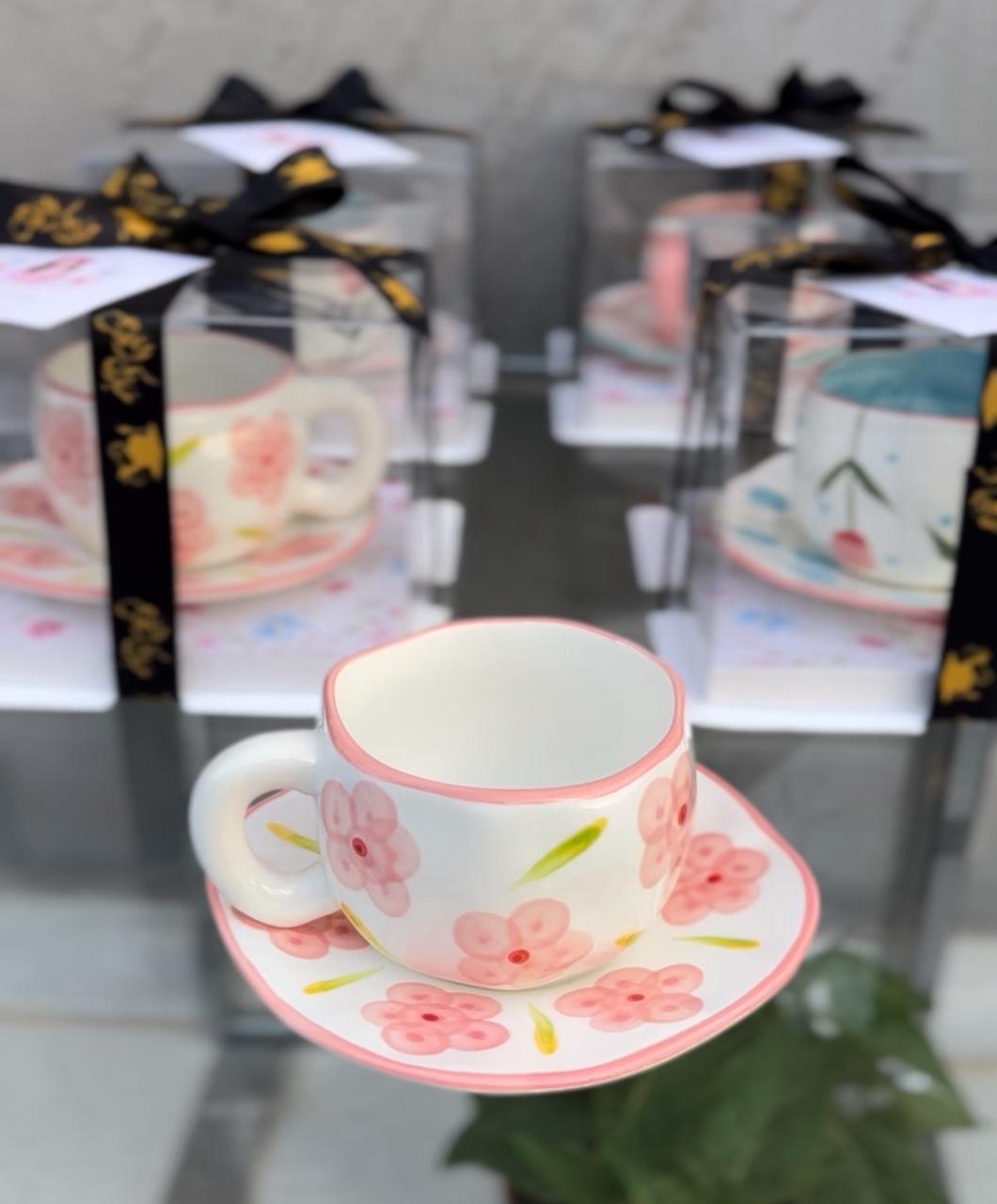 استمتع بتجربة قهوتك بأناقة مع هذا الطقم المميز، المصمم برسومات ورود ناعمة وألوان هادئة تضيف لمسة جمال لأي جلسة.